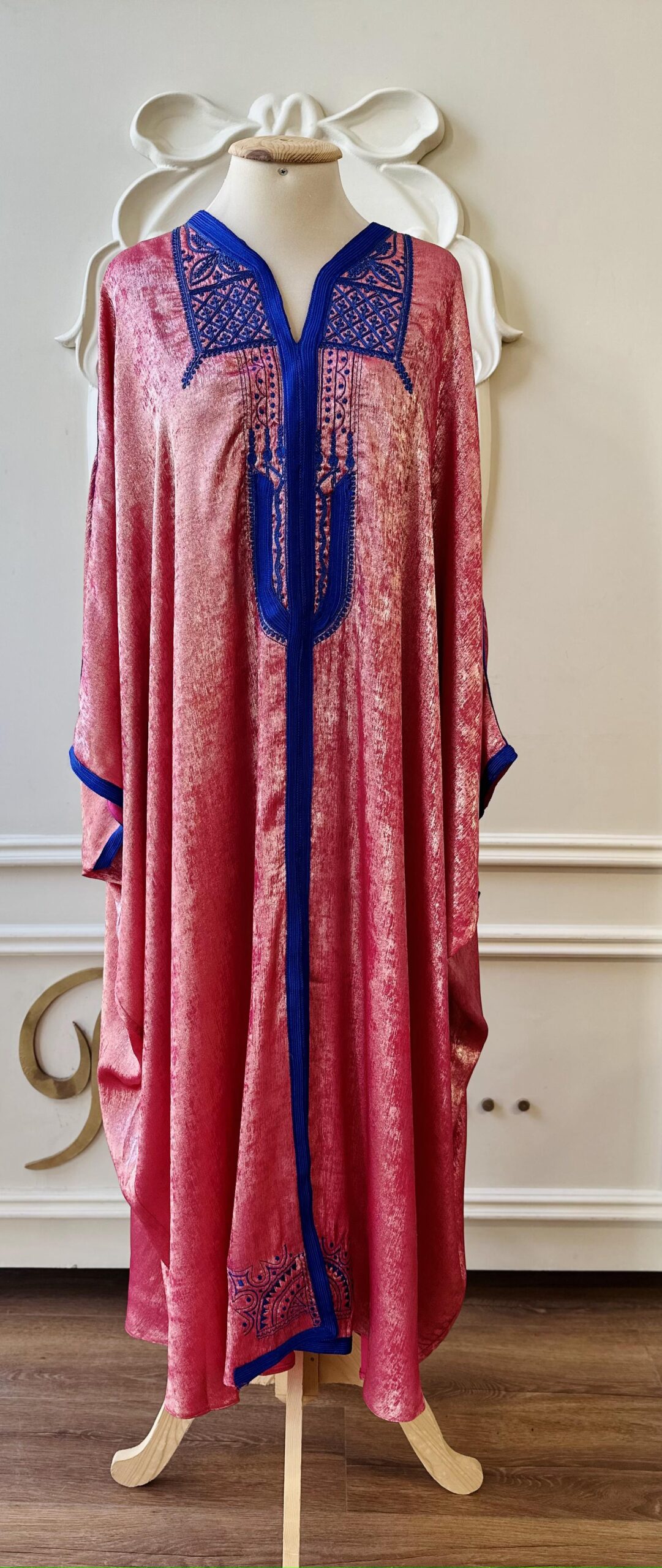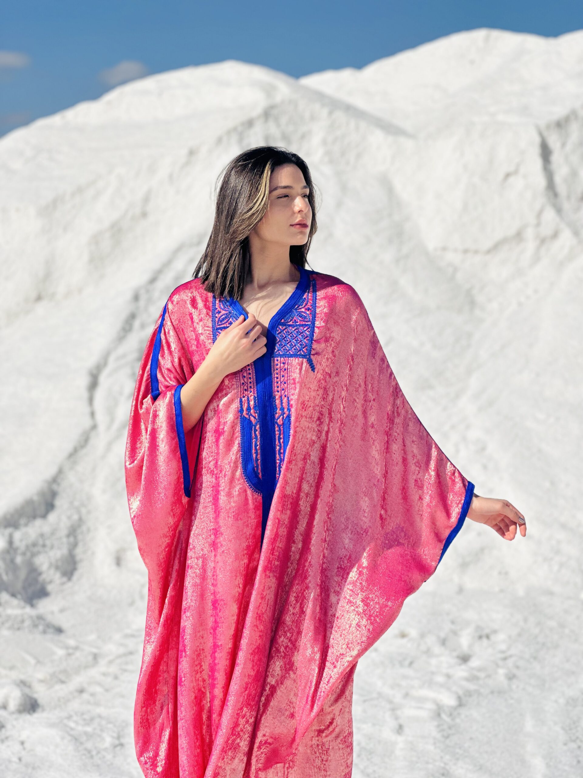 Jebbah en crêpe de soie laquée brodée au fil de soie inspirée du patrimoine Tunisien et de la Djebbah masculine Tunisienne à la broderie SARRAJINE