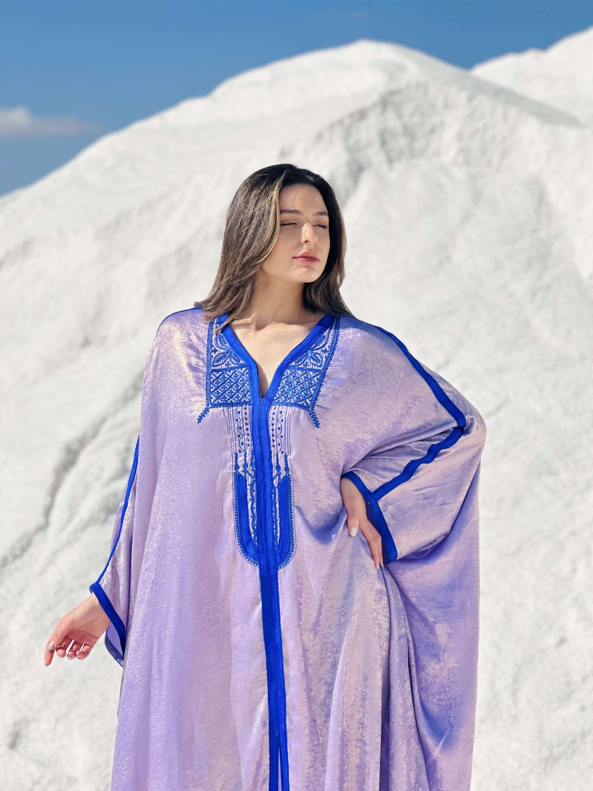NB: Fente réglable sur demande Voir la video | Djebbah traditionnelle revisitée incarne l'essence de la modestie, offrant une silhouette fluide et sophistiquée au col chemisier.